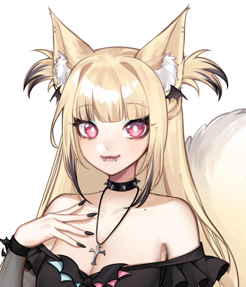 Kits Vesper (aka Kitsume) is a goth fox-girl shinigami vtuber!Kitsume guides the lost souls to the afterlife, all while providing them entertainment and silliness along their journey!She loves Horror content, uplifting and supporting others, hanging with her friends, and smoking weed- coughwant to meet our favorite fox girl? check out her links below!