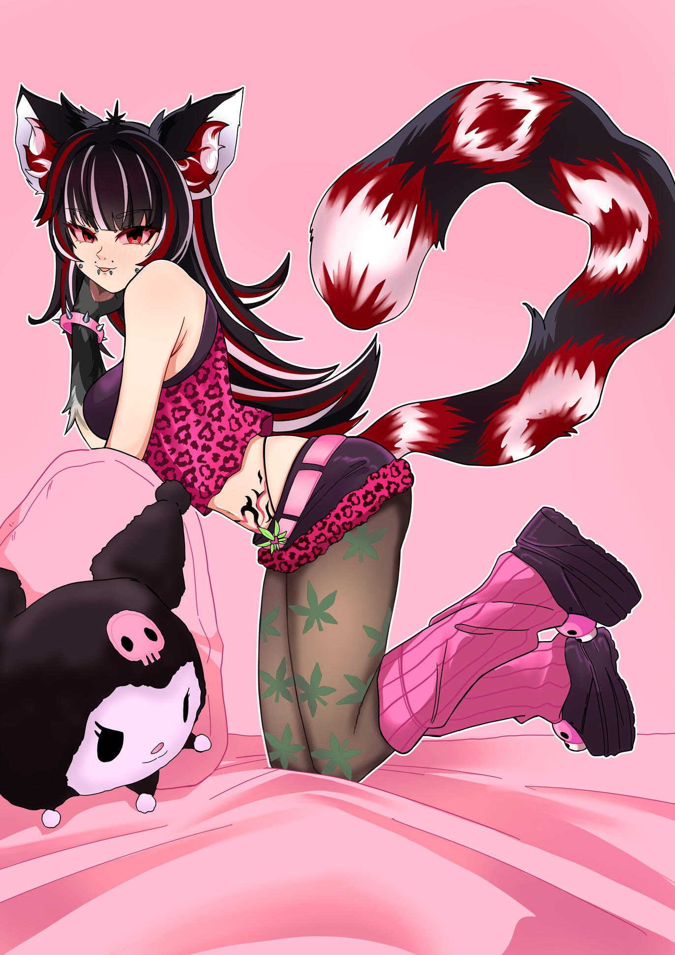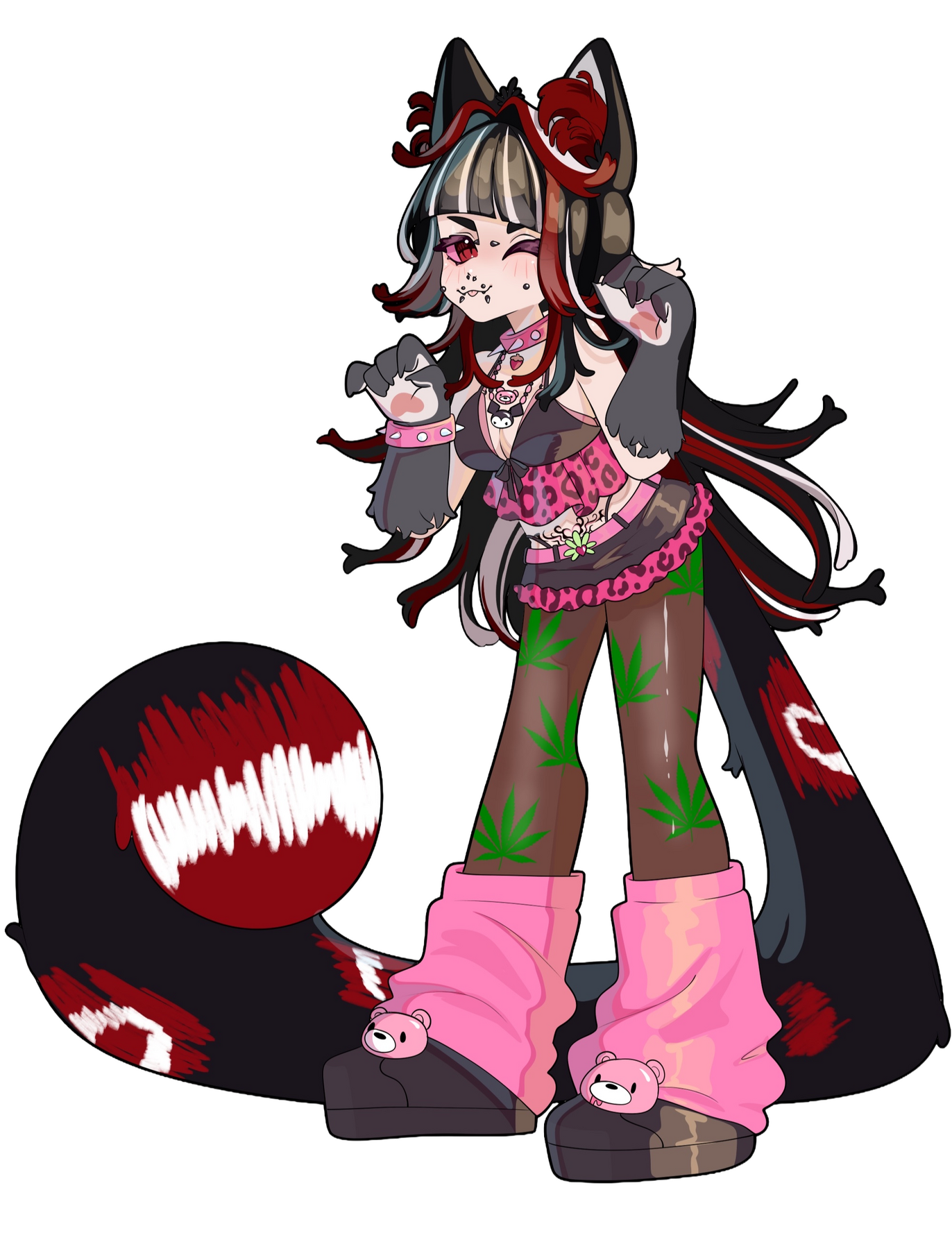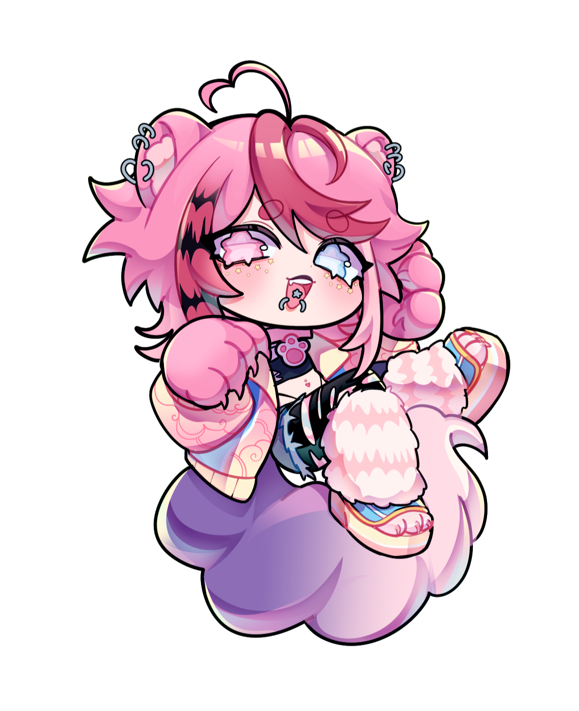 strawbrrytr1pz, most often referred to as strawbz, is a stoner dark snow leopard + maine coon cat mix! their style is based on one of their MANY irl clothing styles!strawbz is big on competitive gaming, horror, and anything that'll give them an excuse to yap with their friends and chat! you'll mainly see them on dbd and rivals, but as a variety streamer, you'll see them also dabbling in asmr, hosting fun events, drawing, voice acting, oh god is this list too long?!-when strawbz is offline, they're usually keeping tabs on their many MANY other ventures! taking care of their pets, being with their partner, gaming or hanging with friends, drawing, touching 'grass'.... the possibilities are endless!you're just gonna have to keep up with them on their socials!