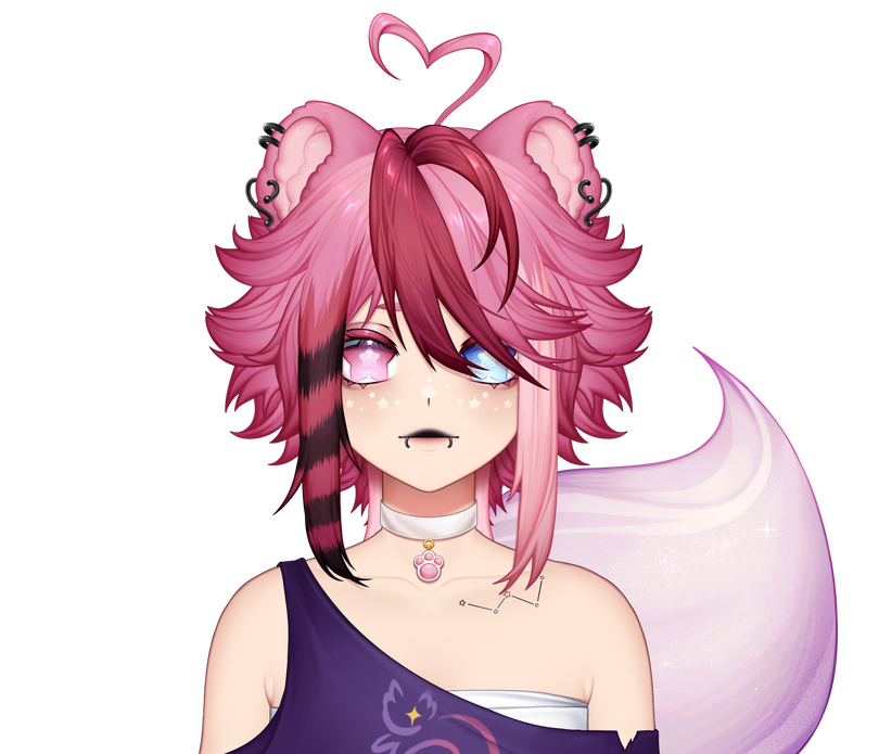 strawbrrytr1pz, most often referred to as strawbz, is a stoner dark snow leopard + maine coon cat mix! their style is based on one of their MANY irl clothing styles!strawbz is big on competitive gaming, horror, and anything that'll give them an excuse to yap with their friends and chat! you'll mainly see them on dbd and rivals, but as a variety streamer, you'll see them also dabbling in asmr, hosting fun events, drawing, voice acting, oh god is this list too long?!-when strawbz is offline, they're usually keeping tabs on their many MANY other ventures! taking care of their pets, being with their partner, gaming or hanging with friends, drawing, touching 'grass'.... the possibilities are endless!you're just gonna have to keep up with them on their socials!